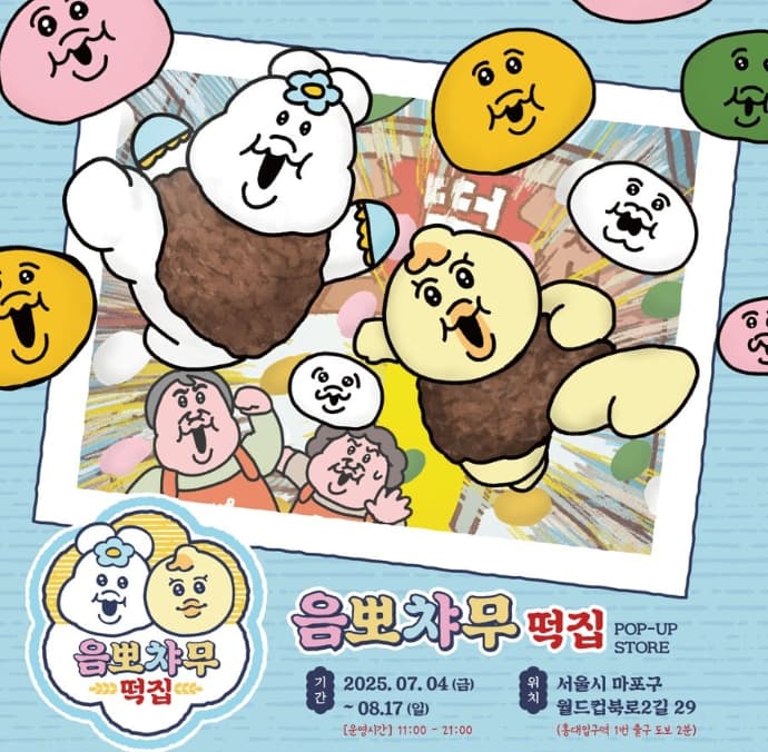 2025년 여름, 귀여움 폭발하는 음뽀챠무 떡집 팝업 스토어가 드디어 서울 홍대에 상륙했습니다! 요거트 요청 캐릭터인 음뽀챠무와 키미마로가 한국적인 떡집 콘셉트로 꾸며진 공간에서 다양한 굿즈와 이벤트로 팬들을 맞이하는데요. 이 포스팅에서는 예약 방법부터 현장 특전, 굿즈 라인업, 꿀까지 한눈에 확인할 수 있는 정보들을 총정리해 드립니다.
