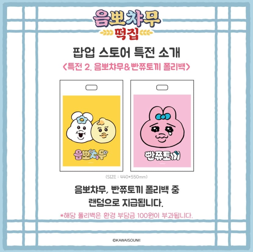 - 쇼핑백(음뽀챠무/빤쮸토끼 중 랜덤) 증정