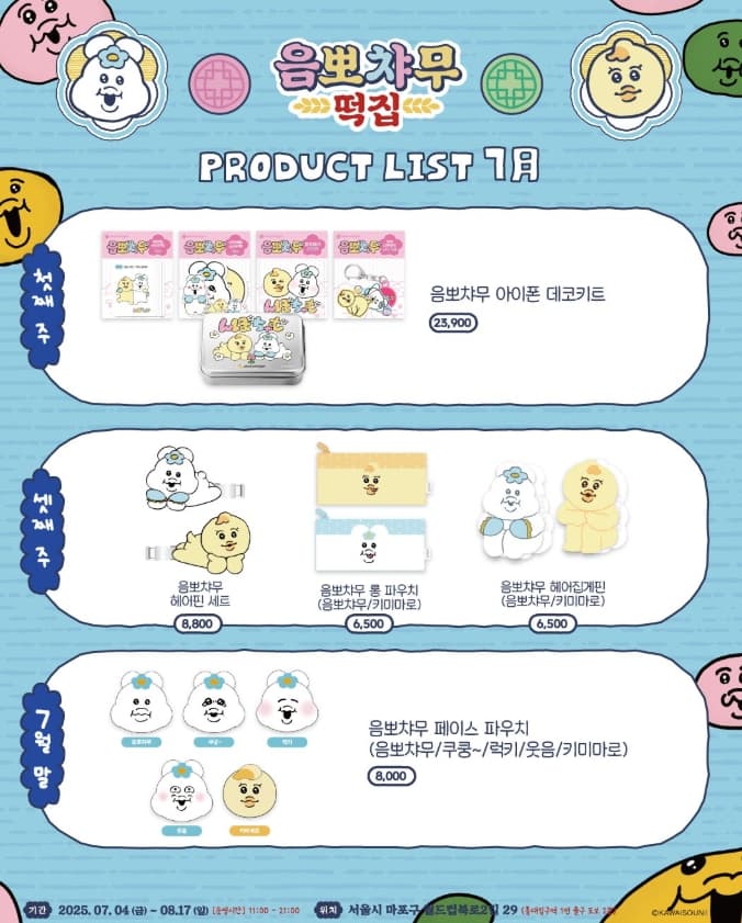 한정판 굿즈, 한국적 떡집 콘셉트, 귀여운 음뽀챠무와 키미마로를 만나볼 절호의 기회!